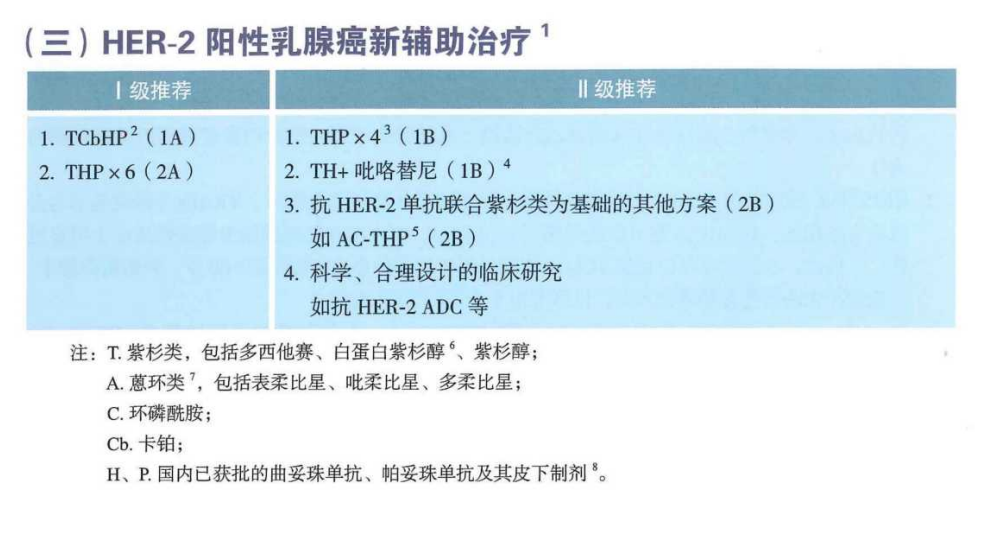 第二,随着生物制剂和不同剂型药物可及性的提高,注释部分也进行了更新:备注中增加H、P为国内已获批的曲妥珠单抗、帕妥珠单抗及皮下制剂。这提示我们除了原研药物以外,还有生物类似药、皮下制剂可以选择。