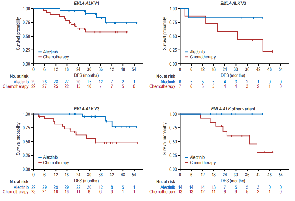 阿来替尼与化疗在EML4-ALK突变患者中的DFS