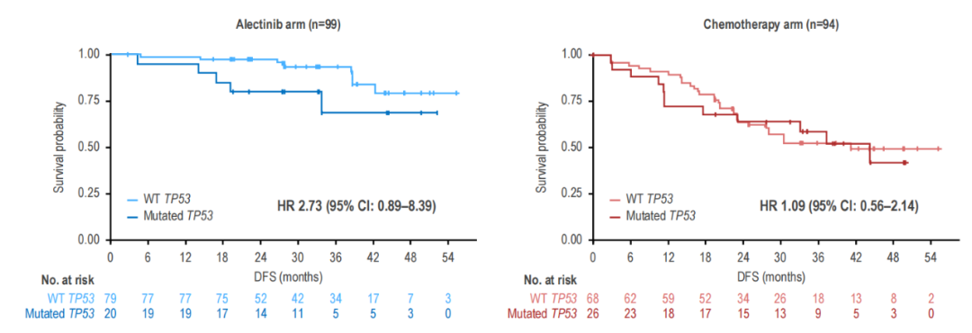 阿来替尼与化疗在TP53突变和野生型患者中的DFS