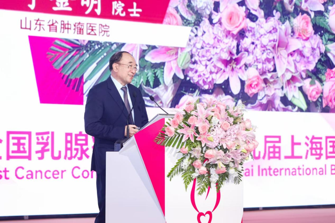 随后,大会主席、复旦大学附属肿瘤医院邵志敏教授上台致辞。他表达了对再次相聚于上海世博会议中心的激动之情,并回顾了乳腺癌诊疗在过去20年中的巨大进步。邵教授表示,希望通过这一平台,能够更好地传播乳腺癌诊疗的新理念、新技术,推动乳腺癌防治事业的发展。他还强调,面对乳腺癌防控和诊疗的严峻形势,以及精准医学和人工智能时代的到来,我们需要不断创新、兼容并蓄,以更好地服务患者。