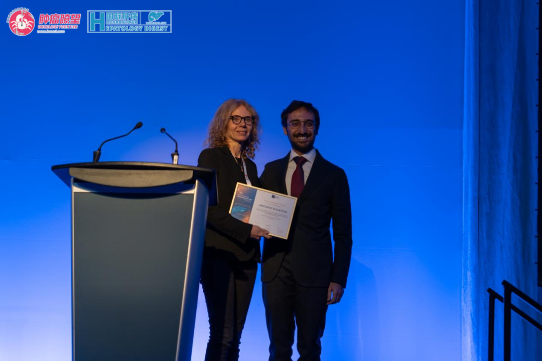 最佳口头报告奖(临床研究):由伦敦帝国理工学院哈默史密斯医院的Antonio D’Alessio博士摘得,他的临床研究报告“新辅助免疫治疗后病理反应可预测肝细胞癌的无复发生存期”因对肝癌治疗预后预测的创新方法而备受赞誉。