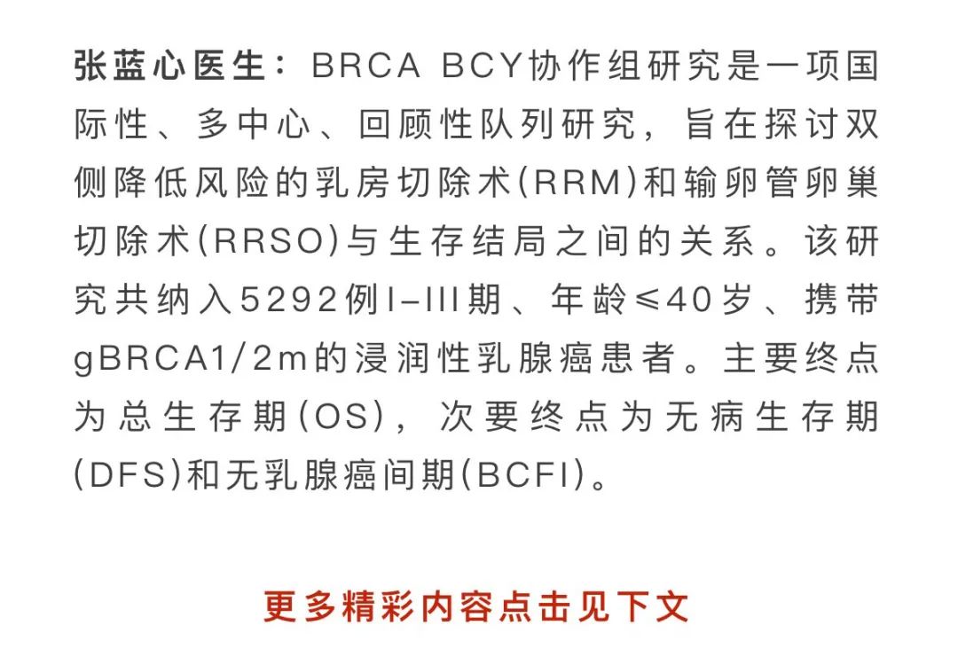 GS1-08.BRCA BCY协作组研究:携带gBRCAm的年轻乳腺癌患者行降低风险手术能否改善生存?