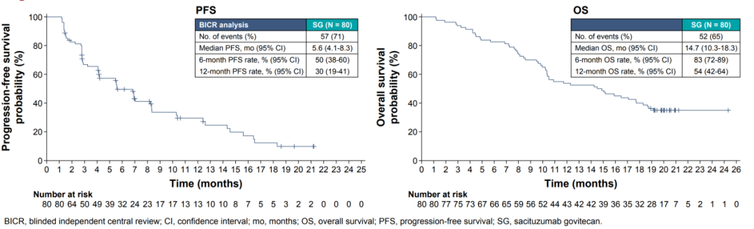 由此可见,在晚期TNBC临床研究的金标准OS方面,SG在国内外二线及以上治疗TNBC时均取得了1年左右的mOS,从而夯实了临床应用的地位。