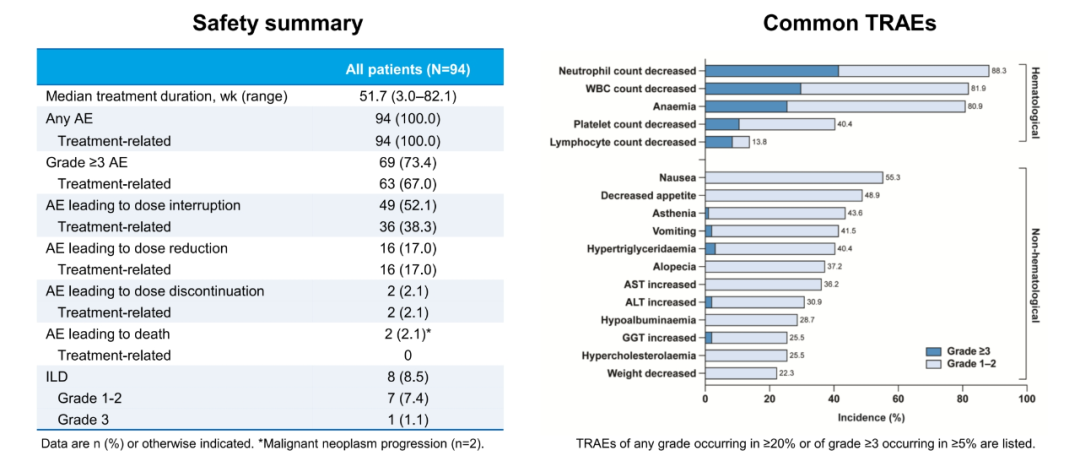 Q2:本次更新中瑞康曲妥珠单抗不良反应导致的停药率仅为2.1%,ILD发生率仅为8.5%,远低于同类药物。您认为其安全性优势源于哪些药物关键设计?