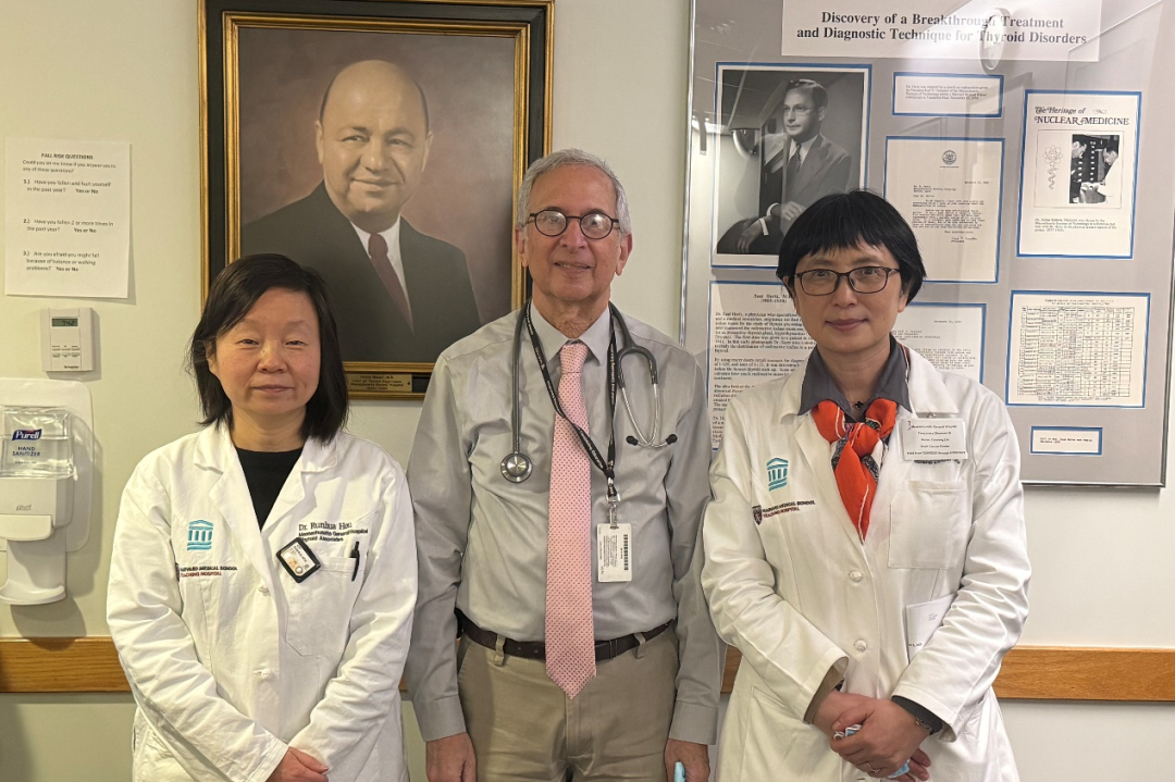 林岩松教授与MGH内分泌科Runhua Hou医生(左)及Douglas S.Ross教授(中)