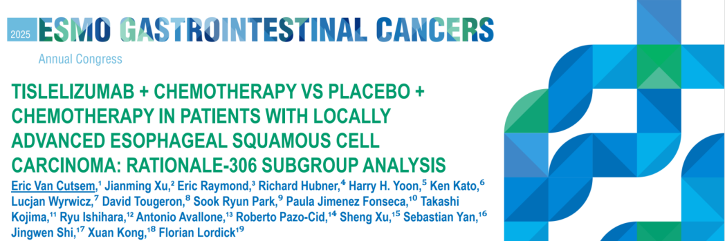 Van Cutsem,E.et al.2025 ESMO GI 389MO Tislelizumab(TIS)+chemotherapy(CT)vs placebo(PBO)+CT in patients(pts)with locally advanced(LA)esophageal squamous cell carcinoma(ESCC):RATIONALE-306 subgroup analysis.Annals of Oncology,Volume 36,S152
