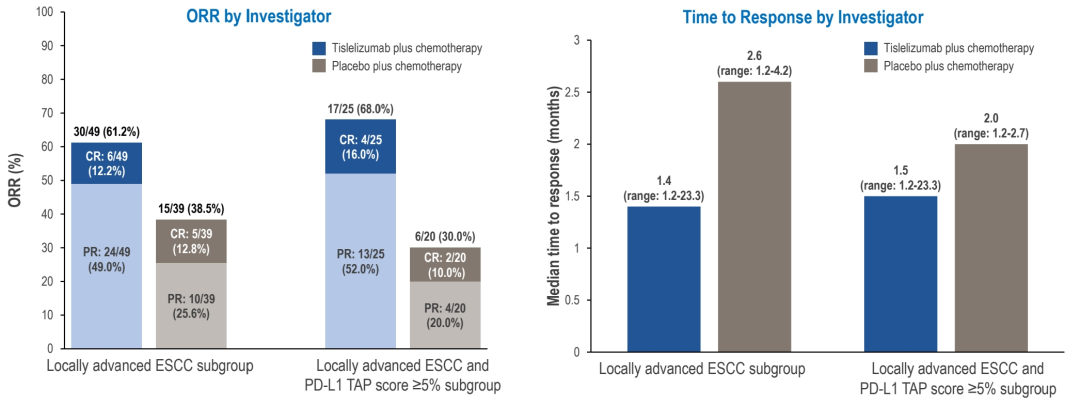 图8.RATIONALE-306局部晚期ESCC PD-L1 TAP≥5%人群及局部晚期全人群的ORR和TTR
