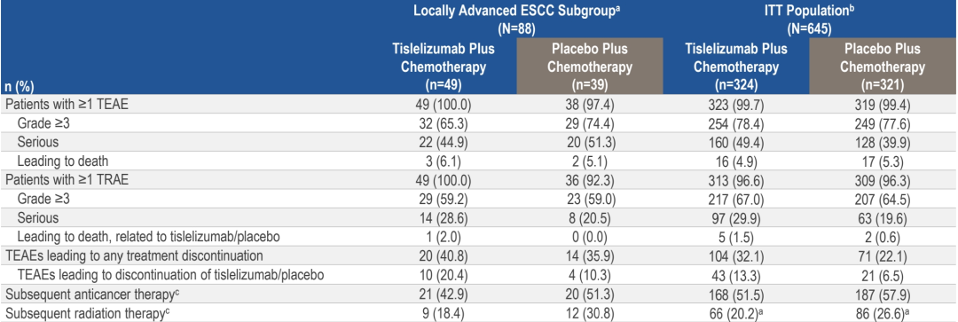 图11.RATIONALE-306局部晚期ESCC亚组和ITT人群的安全性/耐受性