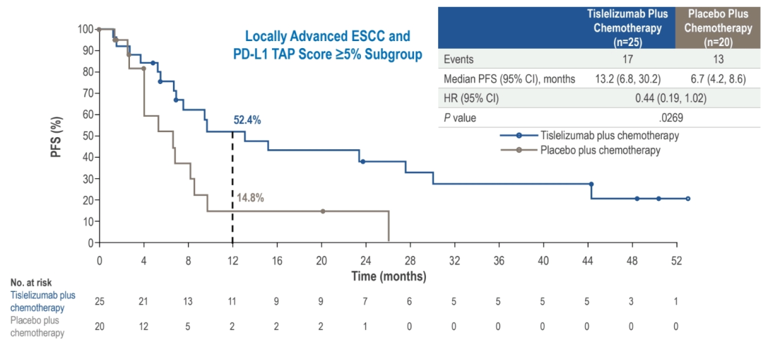 图7.RATIONALE-306局部晚期ESCC PD-L1 TAP≥5%人群的PFS
