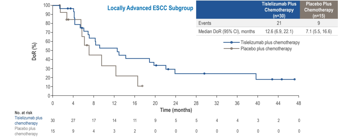 图9.RATIONALE-306局部晚期ESCC亚组的DoR
