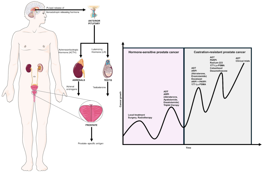 编者按:前列腺癌是全球三分之二国家最常见的癌症,预计未来二十年内其发病率和死亡率都将翻倍。过去三十年,前列腺癌的诊疗快速发展,包括多参数磁共振成像(mpMRI)、PET检查、机器人手术、影像引导的大分割与立体定向放疗、新型抗雄激素药物以及放射性配体治疗等。近日,素有“神刊”之称的《临床医师癌症杂志》(CA A Cancer J Clinicians,2025年最新IF=232.4)发表的一篇综述,系统介绍了前列腺癌的诊疗现状。本文总结复发或转移性前列腺癌(以延长生存为主)的治疗进展。