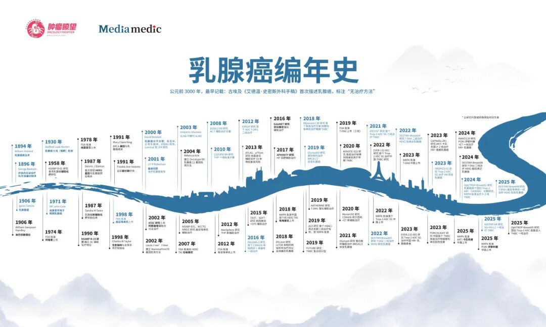 编者按:10月是“世界乳腺癌防治月”,又称“粉红丝带关爱月”。“粉红丝带”作为全球乳腺癌防治活动的标识,旨在传达“早预防、早发现、早治疗”的观念。在历史的漫漫长河中,乳腺癌从束手无策逐渐发展到分型而治、有望治愈的时代,人类有史以来第一次能够触及乳腺癌的治愈。回溯百余年来乳腺癌的诊疗发展的不易,《肿瘤瞭望》特别推出“乳腺癌编年史”系列活动,邀请知名专家回望乳腺癌编年史,镌刻下自己心中最具代表意义的里程碑事件。