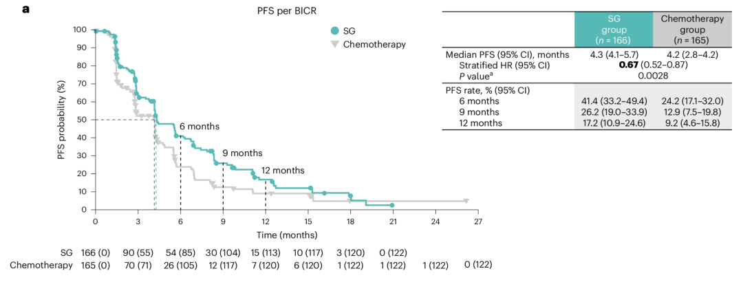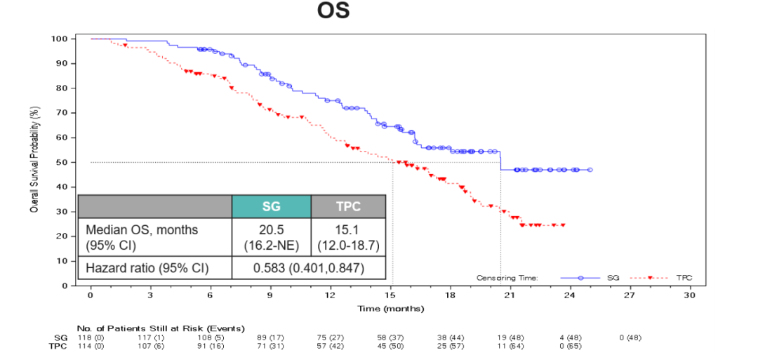 ESMO靶向抗癌治疗亚洲大会(ESMO TAT ASIA)进一步更新了EVER-132-002研究中国人群数据。该研究中国患者占比7成,结果显示mPFS为5.5个月vs 4.1个月,HR 0.622(95%CI:0.457-0.846),mOS分别为为20.5个月vs 15.1个月,HR 0.583(95%CI:0.401-0.847)[10]。该数据再次夯实了SG在中国患者中治疗的循证依据,验证了显著的PFS获益和具有临床价值的OS获益。