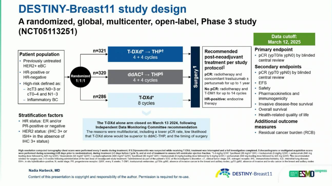 [7].Nadia Harbeck et al.DESTINY-Breast11:neoadjuvant trastuzumab deruxtecanalone or followed by paclitaxel+trastuzumab+pertuzumabvs ddAC-THP for high-risk HER2+early breast cancer.2025 ESMO Presentation 291O.