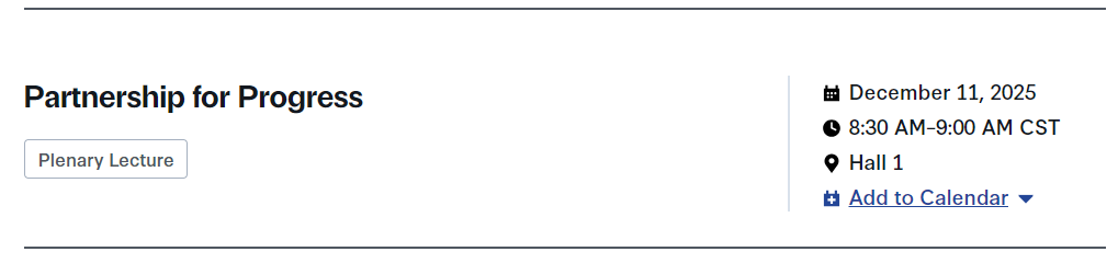 一场大会特邀讲座:合作促进进步。