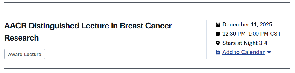 一场颁奖讲座:AACR乳腺癌研究杰出讲座奖