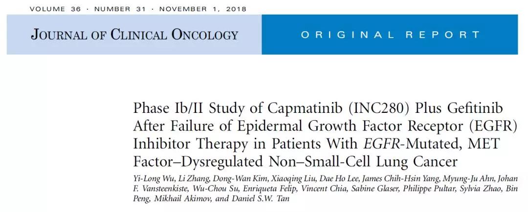 第一,c-MET变异是EGFR突变患者经过长时间EGFR-TKI抑制剂治疗之后所出现的一种耐药形式。在第一、二、三代EGFR-TKI应用平均九个月之后,20%的患者会出现c-MET扩增。因此,2010年我们提出了第一个研究思路,考虑可以把c-MET抑制剂INC280和吉非替尼两药联合起来以克服耐药。在此思路下,我们开始了一系列临床I期、II期研究,就是非常有名的INC280联合吉非替治疗c-MET扩增肺癌患者的有效性及安全性研究。