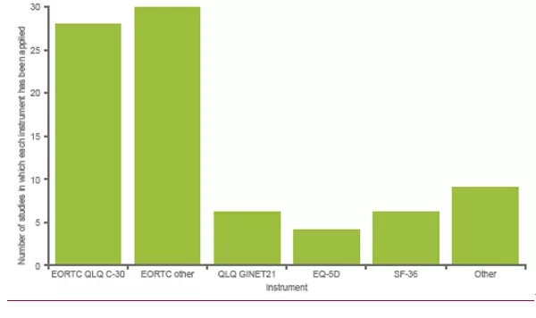 图1. 应用HRQoL和其他评估手段的研究数量