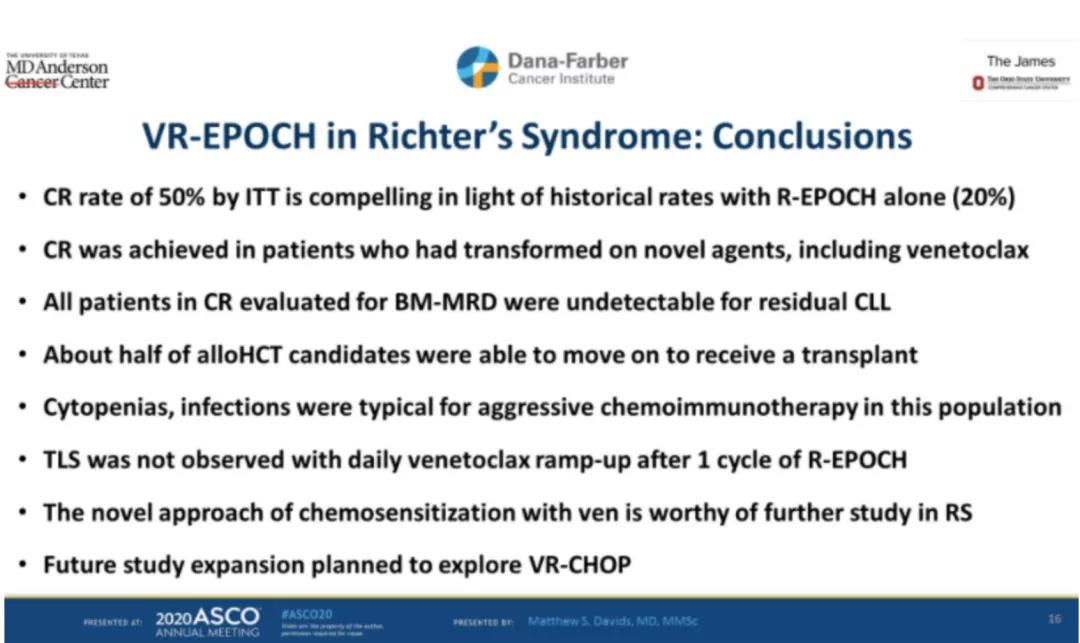 总体上,对于能够耐受其毒副作用的Richter’s转化患者,VREPOCH联合方案不失为一种有效的治疗方案,值得临床上进一步尝试和实践。