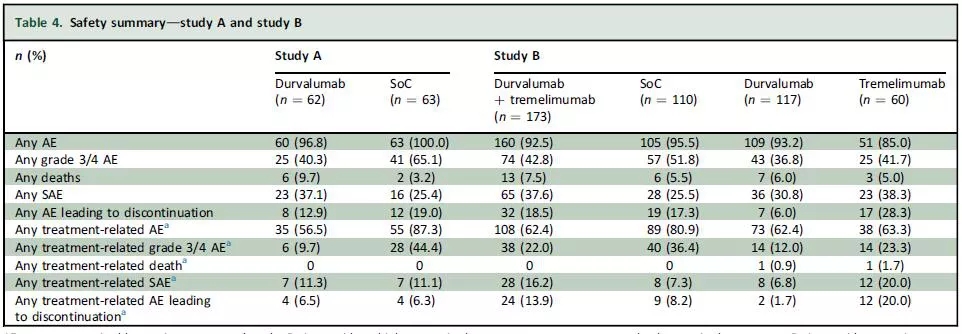 安全性:A部分3度及以上不良反应发生率分别为9.7%和44.4%;B部分双免疫治疗和标准治疗组的3度及以上不良反应发生率分别为22%和36.4%(图6)。