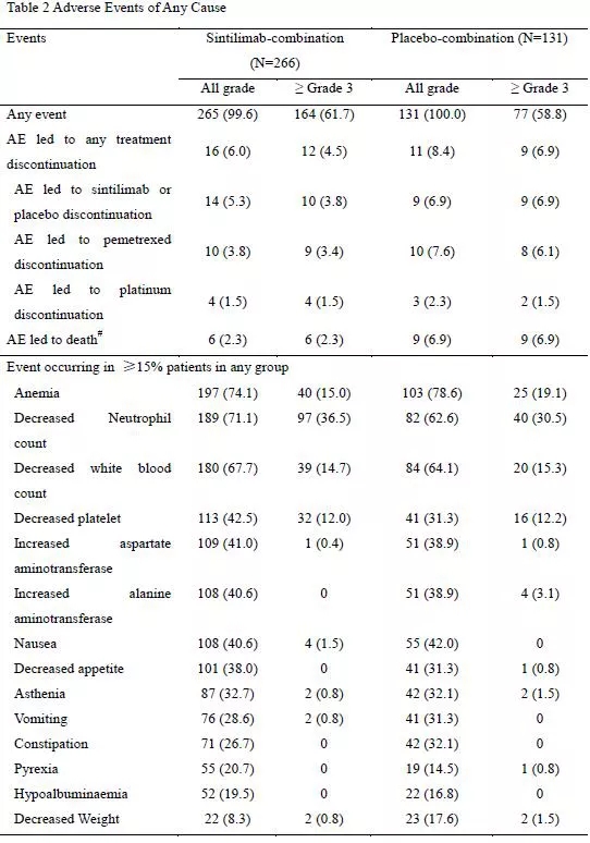 在未经治疗的驱动基因阴性的非鳞、非小细胞肺癌的中国人群中,培美曲塞联合铂类药物化疗的基础上,进一步联合信迪利单抗,可以延长患者的PFS且安全性可控。