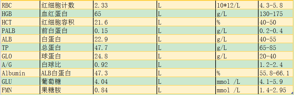 表1实验室检查 2018-4-4