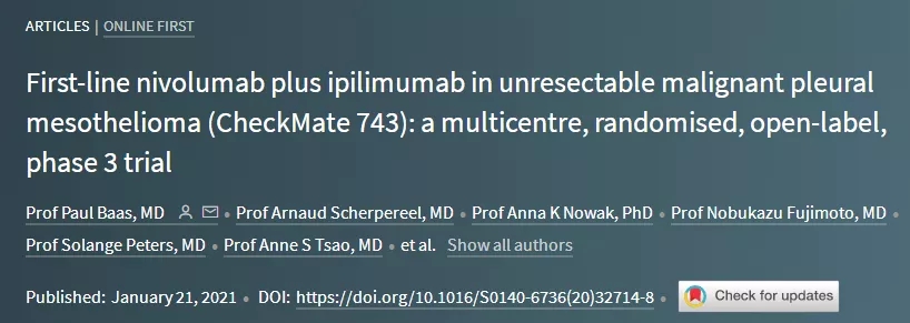 2021年1月21日,CheckMate-743 研究发表于《柳叶刀》