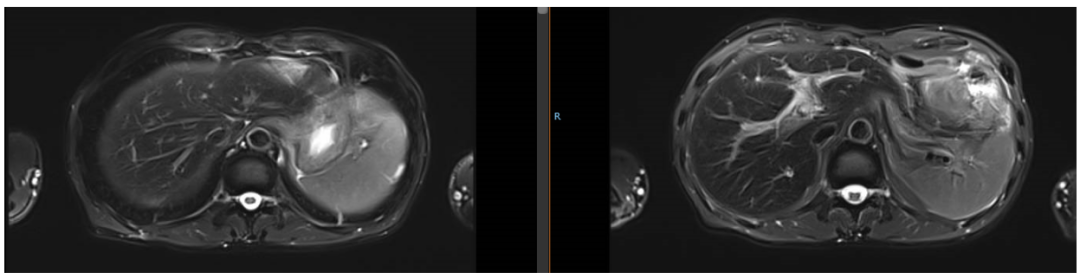 2019年1月24日,经4个周期赫赛汀+DF后,患者肝脏转移灶明显缩小。