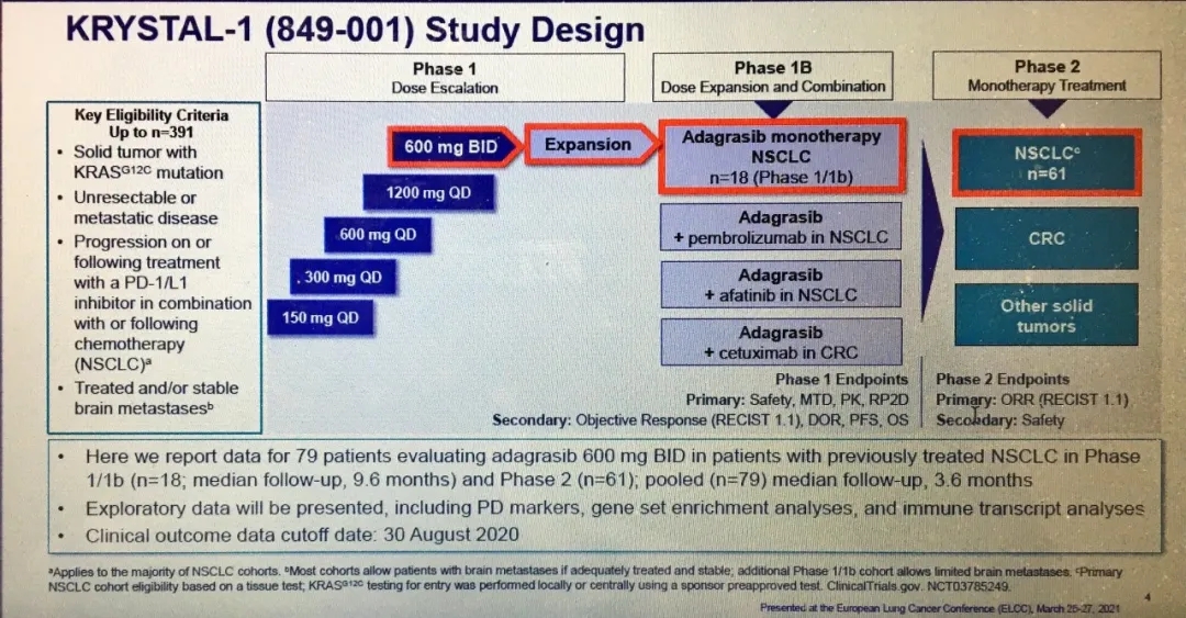 ELCC 2021丨adagasib治疗晚期KRAS G12C+非小细胞肺癌,具有良好疗效和药代动力学特征