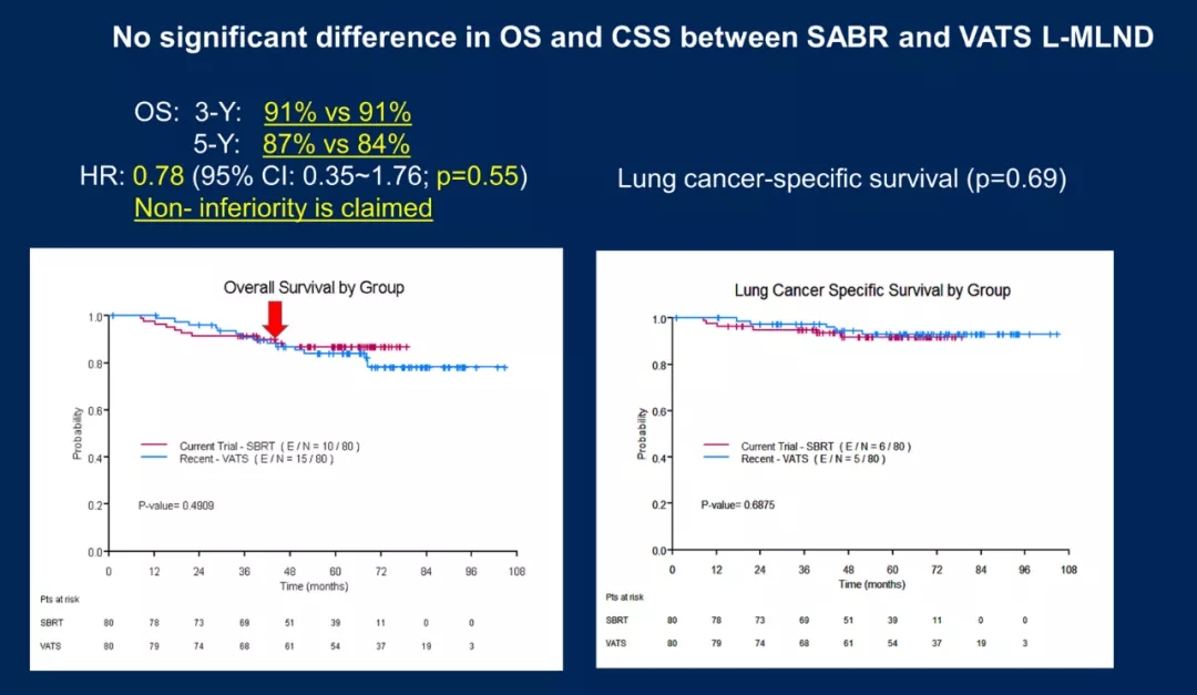 研究得出结论,对于可手术的IA期NSCLC,SABR的长期OS和PFS不劣于VATS L-MLND。SABR组较高的区域复发不会影响OS和PFS。SABR仍然是该人群的一种有前景的方法,但强烈建议对这类患者进行多学科管理。