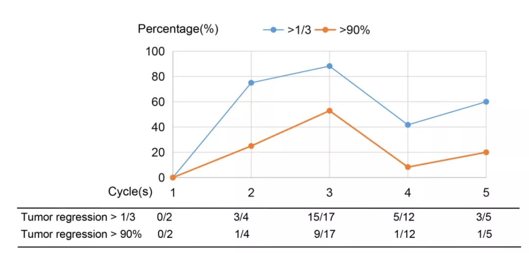 图1. 根据治疗周期进行手术的患者的病理缓解情况
