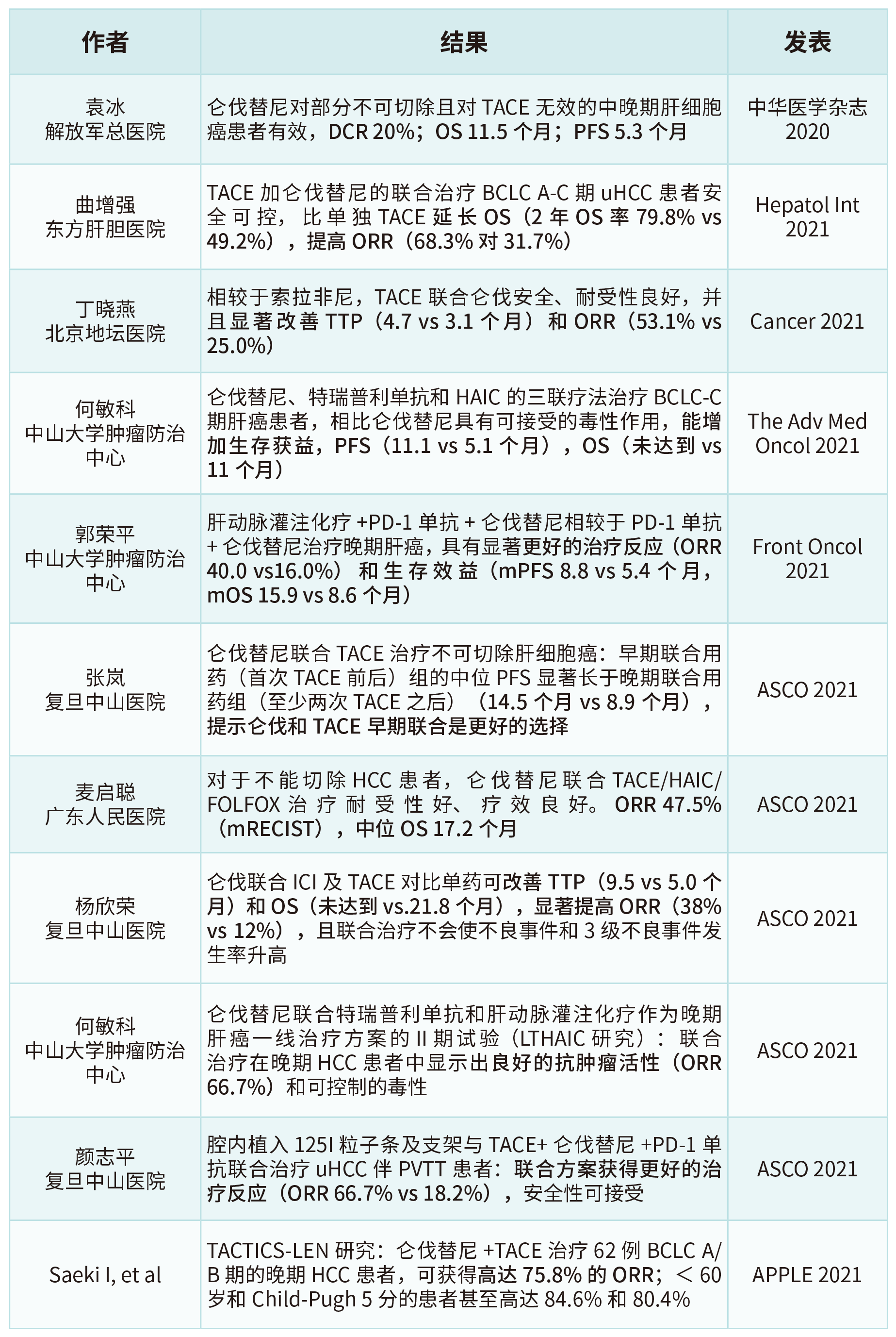 Δ已报道的仑伐替尼联合介入治疗的相关研究