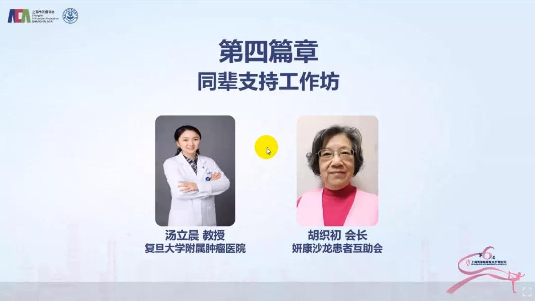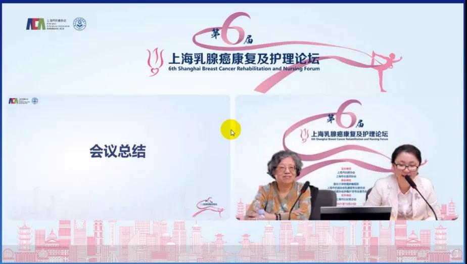 会议最后,汤立晨教授做了最终总结。她指出,“乘风破浪,精准康复”篇章,我们了解了护理工作者在患者的治疗中扮演着重要的角色;“身心疗愈,伴随全程”篇章我们了解到患者伴随疾病管理的重要性及相关处理方法;“年轻患者管理工作坊”、“同辈支持工作坊”篇章,我们听到了很多具有实战意义的案例讲座。在此,再次感谢参与本次线上会议的所有嘉宾、同道和患者姐妹的大力支持!