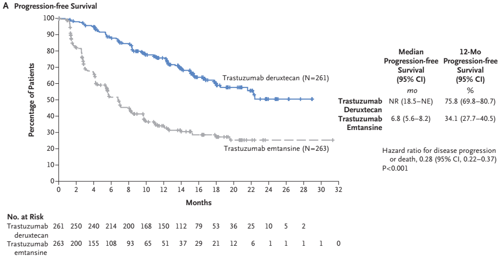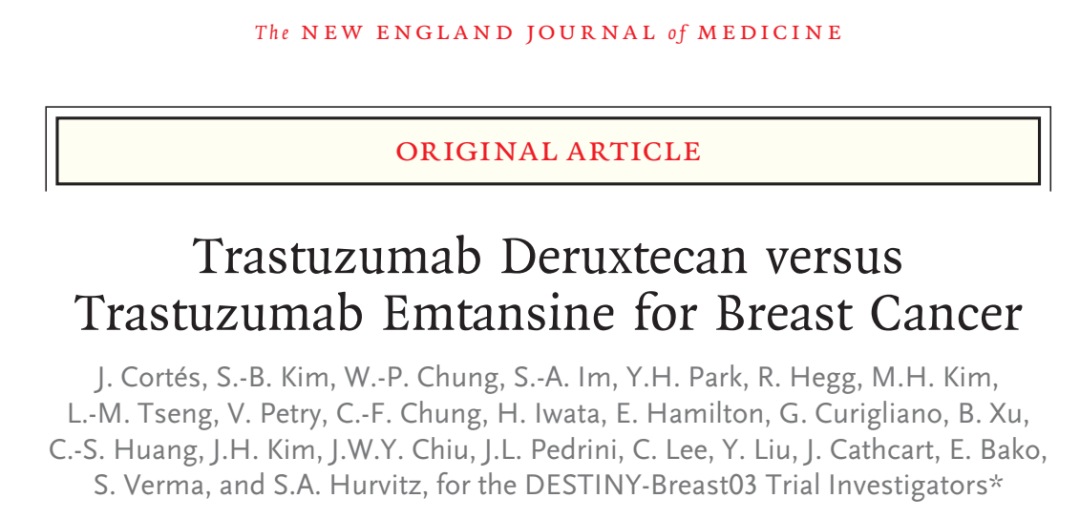2021年ESMO大会以LBA1的形式公布了DESTINY-Breast03 研究的结果,时隔半年时间,2022年3月24日新英格兰医学杂志(NEJM)在线发表了DESTINY-Breast03 研究的全文。