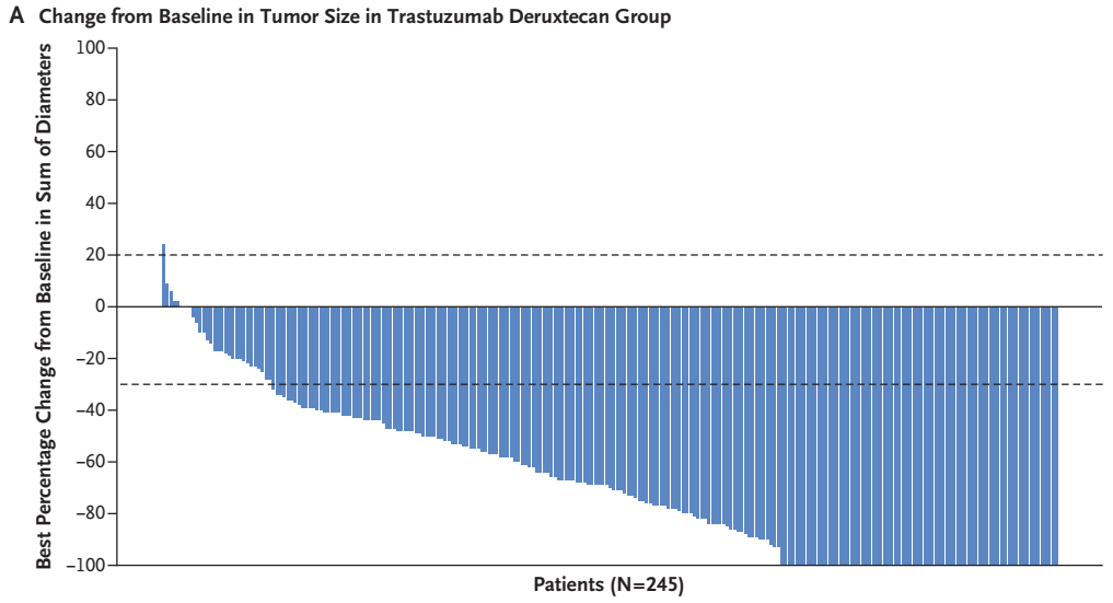 [1]Modi S, Saura C, Yamashita T, Park YH, Kim SB, Tamura K, Andre F, Iwata H, Ito Y, Tsurutani J, Sohn J, Denduluri N, Perrin C, Aogi K, Tokunaga E, Im SA, Lee KS, Hurvitz SA, Cortes J, Lee C, Chen S, Zhang L, Shahidi J, Yver A, Krop I;DESTINY-Breast01 Investigators. Trastuzumab Deruxtecan in Previously Treated HER2-Positive Breast Cancer. N Engl J Med. 2020 Feb 13;382(7):610-621. doi: 10.1056/NEJMoa1914510. Epub 2019 Dec 11.
