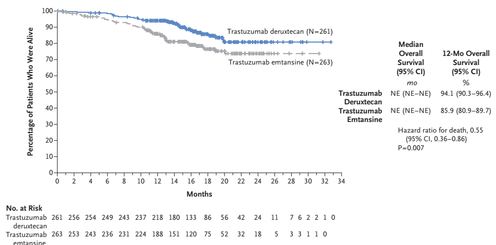 [4]Javier Cortés, M.D., Ph.D., Sung-Bae Kim, M.D., Ph.D., Wei-Pang Chung, M.D., Seock-Ah Im, M.D., Ph.D., Yeon Hee Park, M.D., Ph.D., Roberto Hegg, M.D., Ph.D., Min Hwan Kim, M.D., Ph.D., Ling-Ming Tseng, M.D., Vanessa Petry, M.D., Chi-Feng Chung, M.D., Hiroji Iwata, M.D., Ph.D., Erika Hamilton, M.D., et al. Trastuzumab Deruxtecan versus Trastuzumab Emtansine for Breast Cancer. N Engl J Med 2022;386:1143-1154.