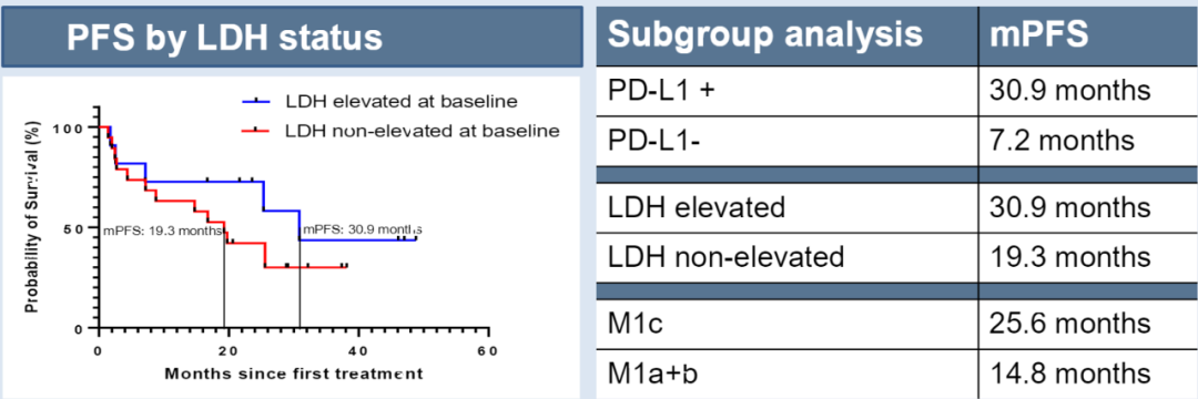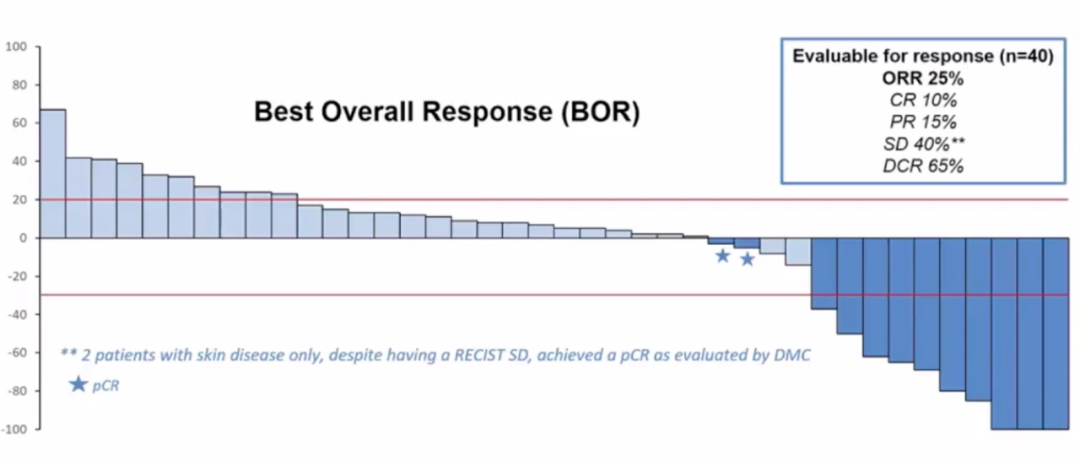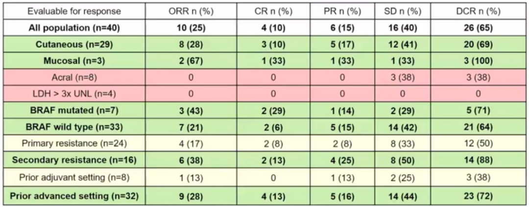该研究已达到主要疗效终点,疾病控制(PR+CR+SD)在目前没有标准治疗方案的人群中是有意义和持久的。高LDH水平(LDH>3xULN)和肢端黑色素瘤治疗效果不佳。