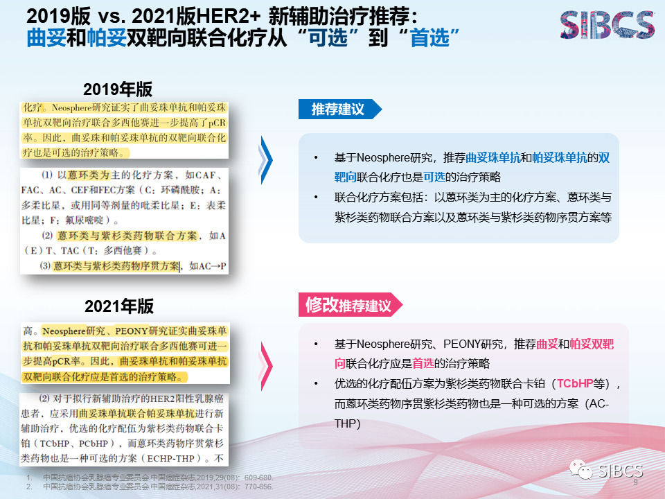 编者按:HER2阳性乳腺癌的创新疗法众多,并且从晚期解救治疗向早期(新)辅助治疗的循证医学证据层出不穷。2021版《中国抗癌协会乳腺癌诊疗指南及规范》是如何根据国内外最新进展并结合国情,对HER2阳性乳腺癌的治疗推荐进行更新修订?复旦大学附属肿瘤医院张剑教授在CBCS小红书社区进行解读如下。