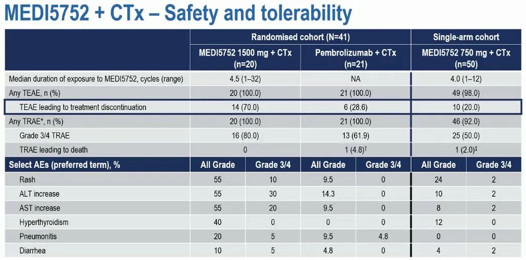 因此,MEDI5752 750mg联合化疗为NSCLC一线治疗提供了潜在的治疗选择,尤其是PD- L1阴性患者,但仍需更长的随访时间来进一步确证疗效。