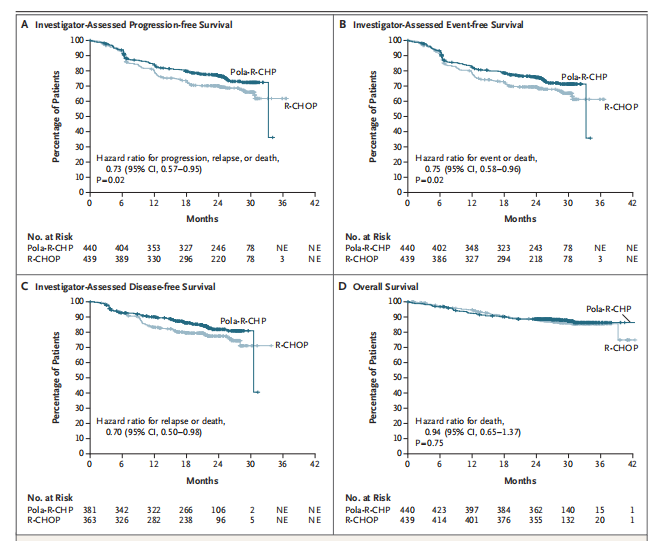 在此背景下,pola-R-CHP方案取得的疗效成果为DLBCL患者提供了新的治疗选择,也一举打破了多年来“R-CHOP+X方案”难以超越经典R-CHOP方案疗效的“困境”,我们可看到,基于POLARIX研究的结果,pola-R-CHP方案达到了主要的研究终点,实现了疗效的提升,这对于DLBCL患者意义重大。