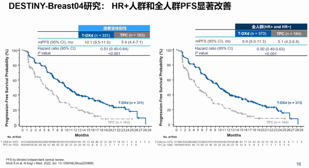 Destiny-Breast04研究主要针对HER2低表达人群进行治疗探索,研究结果显示,无论HR状态如何,T-DXd相较于化疗组都能得到PFS甚至OS的获益。因此,T-DXd也得到了乳腺癌领域专家和学者的认可。同时,基于Destiny-Breast03和Destiny-Breast04研究的结果公布,NCCN指南和ASCO指南也快速进行了更新,基于Destiny-Breast04研究结果,FDA也批准了T-DXd在HER2低表达人群中的适应症。相信随着这两项研究结果的披露及国内外指南的更新,未来CBCS指南也会针对相应部分进行更新。
