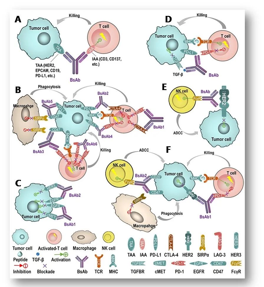 针对现有和新靶点的很多双特异性抗体处于早期临床开发阶段,呈现百花齐放的景象。