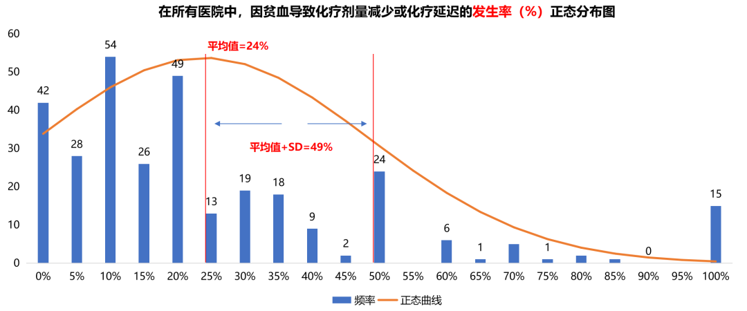 图2.因贫血导致化疗剂量减少或化疗延迟的发生率(%)正态分布图