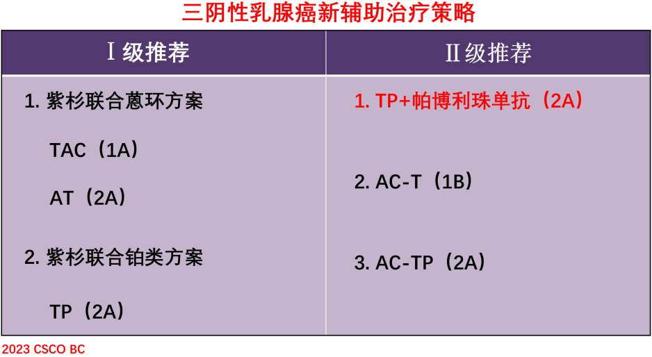 2023 CSCO BC丨重磅升级!帕博利珠单抗+TP新辅助治疗TNBC获CSCO BC指南Ⅱ级推荐