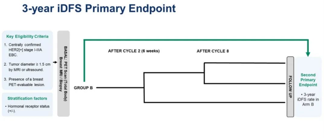 Javier Cortes教授:PHERGain研究有两个主要终点。其中之一是评估未接受化疗的患者在病理学完全缓解方面的初步疗效(B组pCR率,2021年ASCO大会上已经进行了公布)。另一个主要终点是远期预后,即浸润性疾病的存活率,其重要性更高。对于起初未接受化疗的患者,根据其治疗情况决定是否接受化疗。本次ASCO大会上,我们所呈现的是第二个主要终点,即整体患者组的浸润性疾病存活率(iDFS率)。结果显示,B组ITT人群患者的3年iDFS率为95.4%(95%Cl:92.8%~98.0%)。