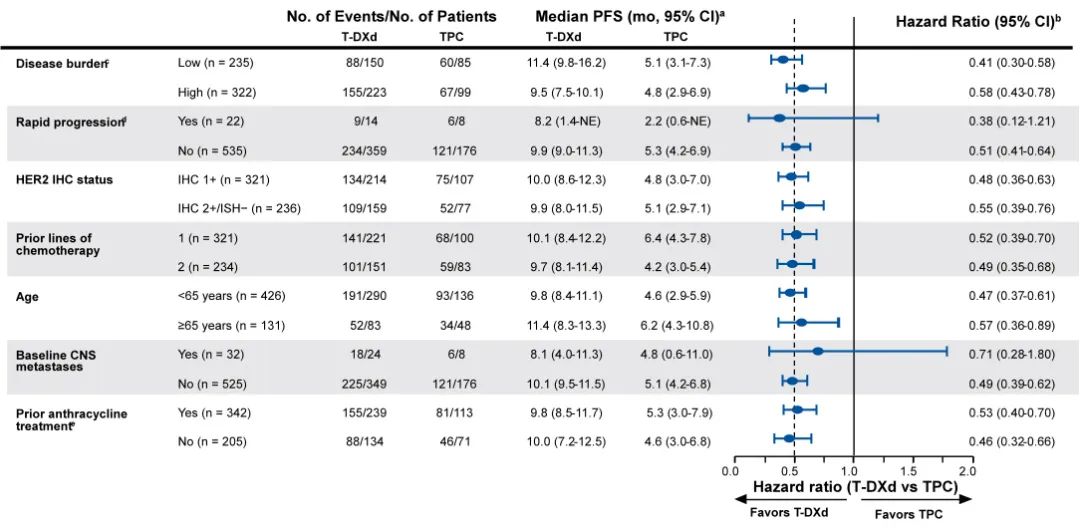 图6.DB04研究不同亚组患者接受T-DXd治疗的PFS