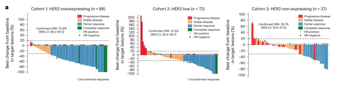 图3.不同HER2表达队列接受T-DXd治疗的疗效