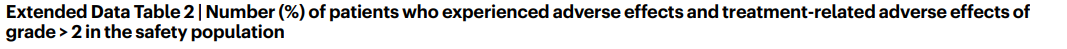 安全性方面,总共有145例(81%)患者永久停止治疗,其中队列1:49例(72.1%),队列2:61例(83.6%),队列3:35例(92.1%)。在这145例患者中有125例(86.2%)患者因疾病进展而停药,13例(9%)患者因毒性而停药。本研究中观察到的不良事件与先前的数据一致,≥3级最常见的不良反应是中性粒细胞减少(12%)、疲劳(8%)和呕吐(6%),这与TOP1抑制剂的毒性特征一致。9例患者(5%)表现为间质性肺疾病或肺炎,大多数为1级或2级。3例(1.7%)患者出现射血分数下降(1例3级)。3例(1.7%)患者出现5级不良反应,但无药物相关的5级不良事件。