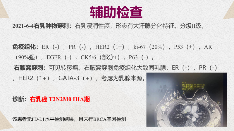 王丽教授:对于晚期一线TNBC的治疗,作为外科医生,我们更多的还是会去参考指南标准,可能会选择一线化疗方案,该患者在新辅助阶段接受的是紫杉联合蒽环强效联合治疗,在进入晚期的化疗阶段后,可能这两个药物就不再使用了,会选择其他的化疗药物。大家知道针对TNBC的一线化疗在临床中还是比较常用的,尤其是在我们基层医院,那么到底是联合治疗还是单药治疗,可能更多的会参考患者的一般状况。对于一个48岁的相对比较年轻的女性,仅仅接受过两个周期的新辅助治疗,就我个人而言会更倾向于联合化疗。
