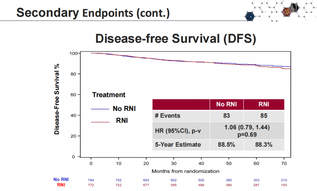 结果显示,该研究中患者的IBC-RFI、DRFI、DFS及OS,在两组之间均无明显差异。
